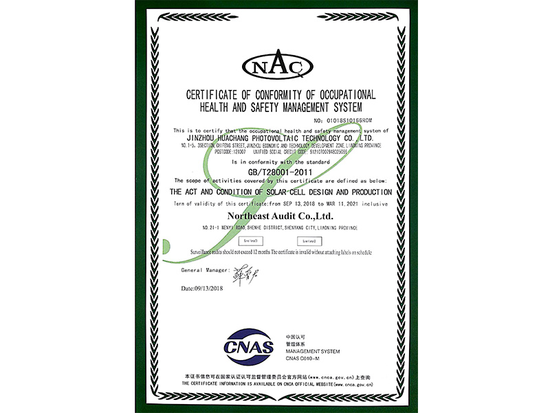 職業(yè)健康安全管理體系認(rèn)証証明書(shū)(中國(guó)語(yǔ))