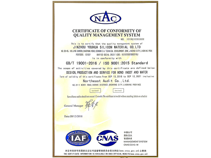 質(zhì)量管理體系認(rèn)證證書(中文)