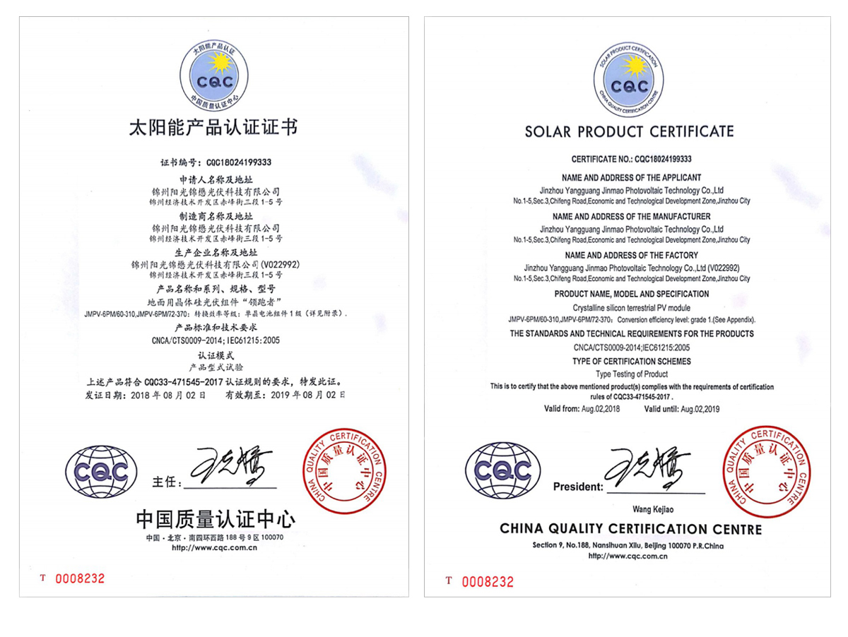 常規(guī)領跑者組件CQC