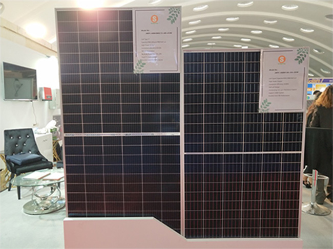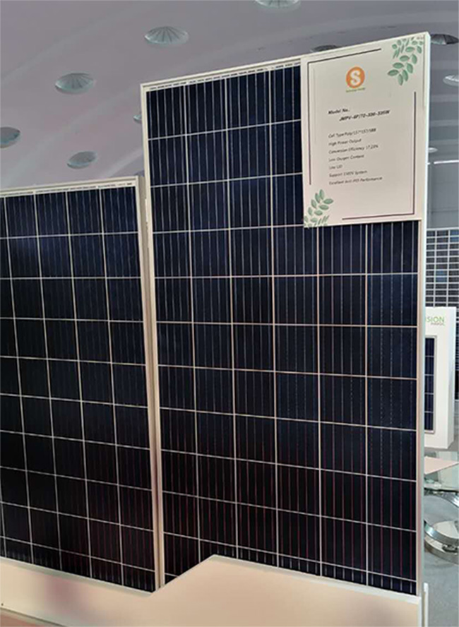 此次展會(huì),陽(yáng)光能源品牌展出三款組件,分別為單晶雙玻半片9BB-410W組件、單晶常規(guī)半片5BB-330W組件、多晶72片330W組件和多晶60片275W組件,其中,多晶275W和330W組件由於性價(jià)比高,在當(dāng)?shù)厮孟到y(tǒng)和農(nóng)業(yè)專(zhuān)案中應(yīng)用廣泛,引起熱銷(xiāo)浪潮。另外,單晶雙玻半片9BB-410W組件也受到很多訪客的關(guān)注和諮詢。