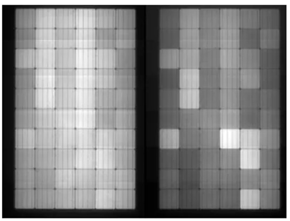 2019年9月,F(xiàn)raunhofer 實驗室MatthiasPander團隊公開發(fā)表了《Prediction of potential power/field lossfrom LeTID susceptible modules》,論文對LeTID組件的功率衰減進行了詳細的研究,如下圖為經(jīng)過690h測試後的單晶PERC組件EL照片,組件內(nèi)部的電池亮度均勻性變差,部分電池已經(jīng)呈現(xiàn)性能衰減。