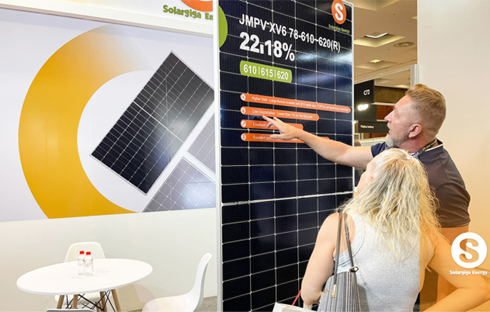 作為全球知名光伏組件制造商,陽光能源在本次大會上向來自全球的業(yè)界翹楚展示了我司的先進技術(shù)和創(chuàng)新產(chǎn)品。陽光能源3款Giga-P系列組件面向當(dāng)?shù)卮笮偷孛骐娬镜葢?yīng)用場景,量產(chǎn)功率最高可達670W;此外,陽光能源還展示了1款 Giga-N系列78片雙玻組件產(chǎn)品,以更高效、更前沿的組件特性,俘獲大批觀眾駐足欣賞。展會現(xiàn)場,陽光能源還與當(dāng)?shù)鼗锇楣餐接懥四戏枪夥a(chǎn)業(yè)發(fā)展新機遇。